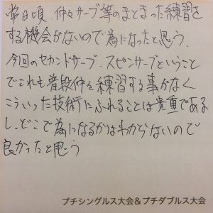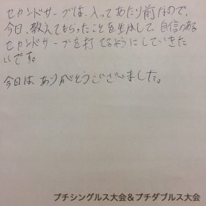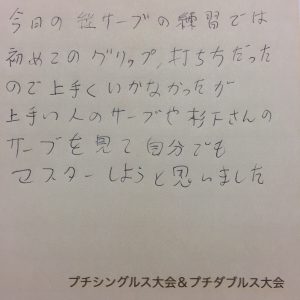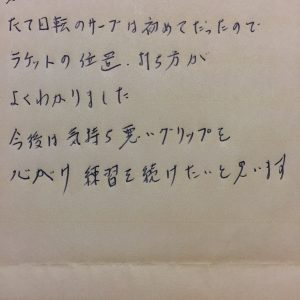 また、ダブルフォールトに苦しんでいた小学生もあっという間に打てるように!!その日の感想などもこちらにアップしております!