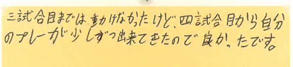 たくさん試合できて良い経験になったとのこと、嬉しいです!