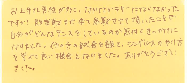 ぜひ、この経験を活かして、これからのテニスをより楽しんでくださいませ!