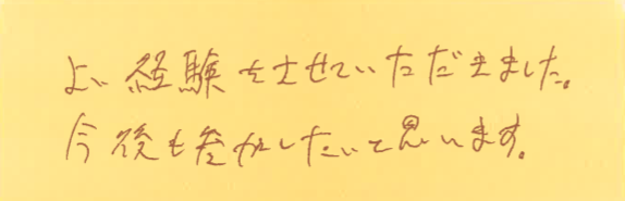 今回は、9月13日の大阪(北村)大会に初めて参加された方の感想をシェアさせていただきます!