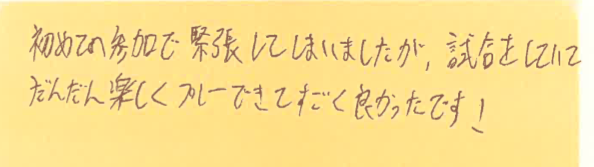 「初めての参加で緊張してしまいましたが」・・・とのことですが、やはり試合は緊張するものです!