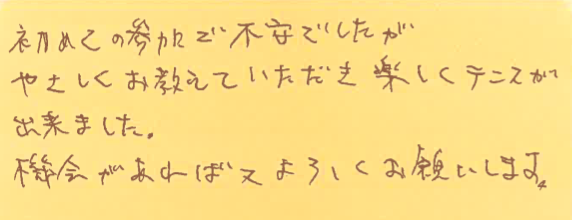 「楽しくテニスができた」とのこと、嬉しいです!
