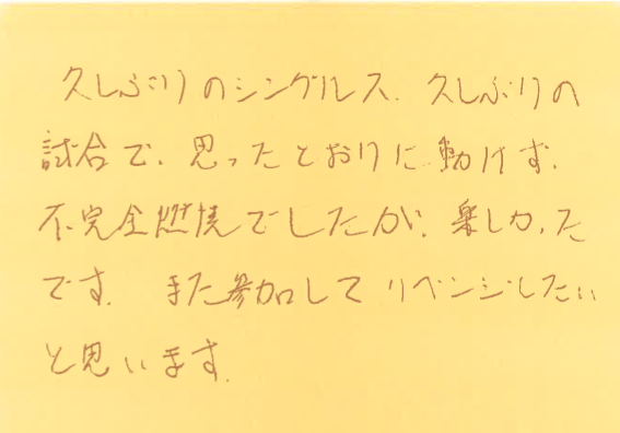 久しぶりのシングルス&試合だったとのこと、まずはお疲れ様でした!