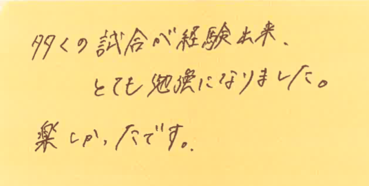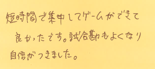 多くの試合が経験出来、とても勉強になった・・・とのこと、嬉しいです!!
