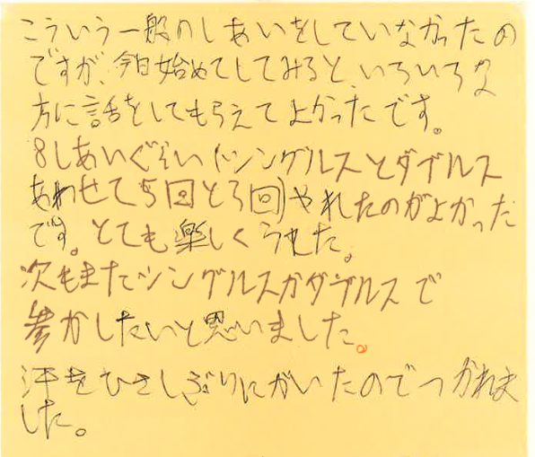 今回は人数の関係で、ダブルスにも参加していただき、たくさん試合をしていただきました!
