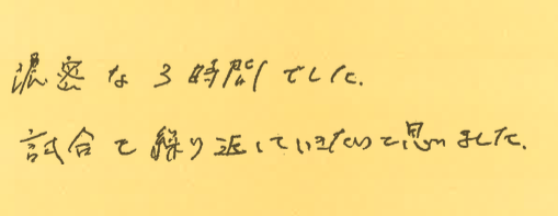 「濃密な3時間でした」・・・主催者として嬉しいです!!