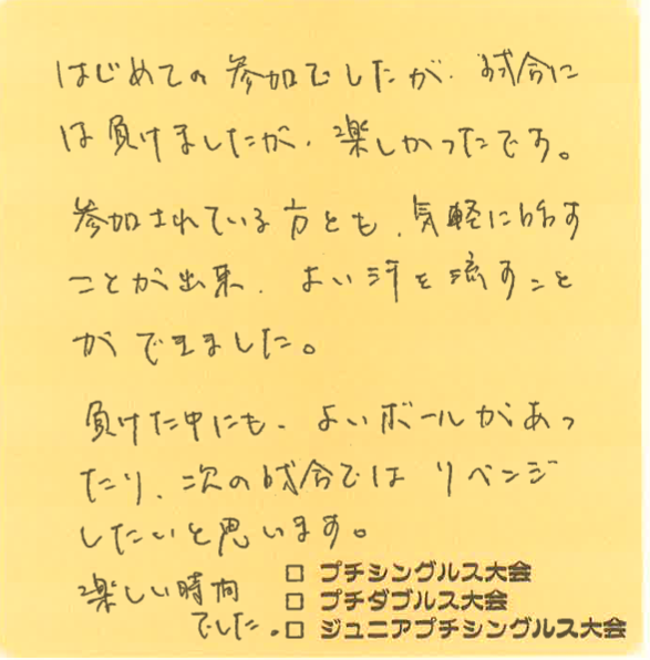 プチシングルス大会の杉下です!