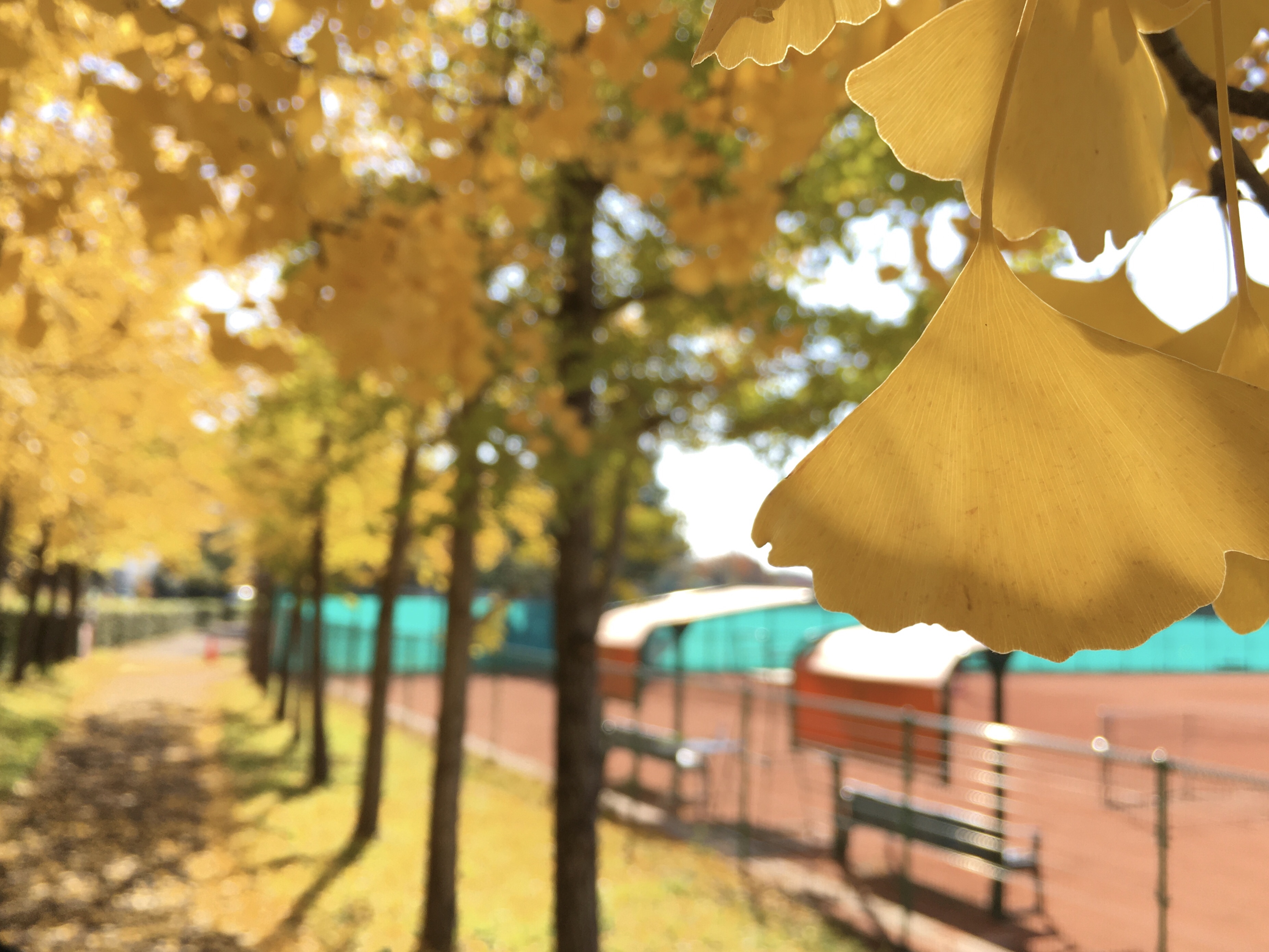 コートサイドの銀杏もいい感じに色づいておりましたので、思わず撮ってしまいました。