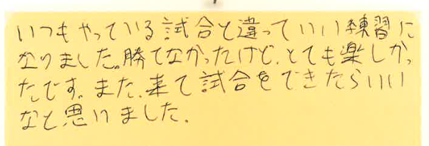 いつもやっている試合と違っていい練習になった・・・とのこと、嬉しいです!