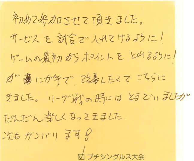 また、皆さんとコートでお会いできる日を楽しみにしております!!