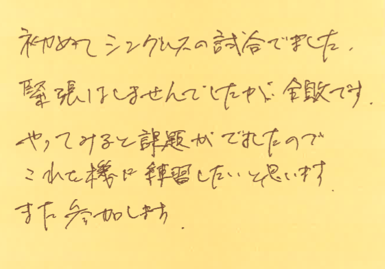 ぜひその部分を練習しつつ、また試合でその進捗を確かめて、また練習をする・・・というサイクルを実践していただくと、早く強くなれると思いますので、また、気軽にご参加いただけたらと思います!!