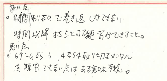 おっしゃる通り、試合経験を積むことが大切で、それを実感してくださったんですね!
