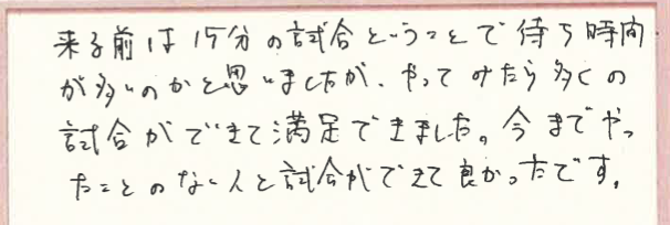 それと、多くの試合ができたこと、今までやったことのない人と試合ができたこと、喜んでいただけて嬉しいです!