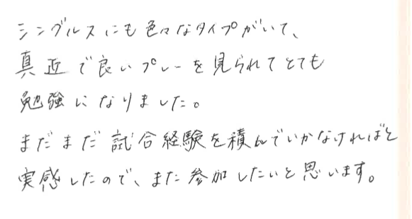 たくさんの試合ができて楽しかったとのこと、嬉しいです!