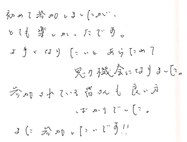今回は、12月の調布大会に初めて参加された方の感想と私からのお返事をシェアさせていただきます!