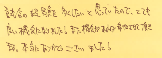 試合経験を積む、良い機会になったとのこと、良かったです!