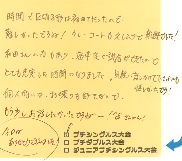 また、皆さんとコートでお会いできる日を楽しみにしております!!