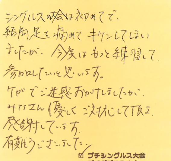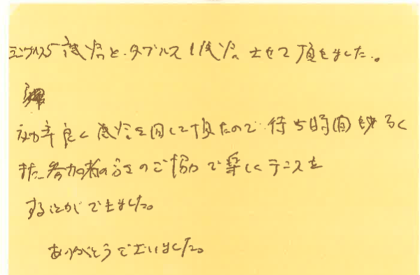 また、皆さんとコートでお会いできる日を楽しみにしております!!