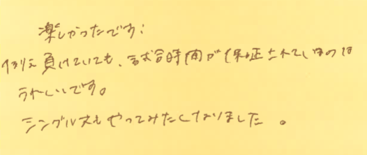 シングルスにも興味を持ってくださったとのこと、ぜひ気軽にお越しください!!