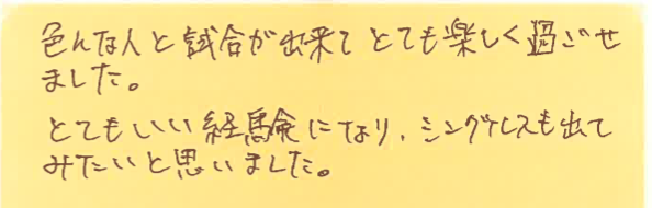「色んな人と試合がたくさんできてとても楽しく過ごせた」とのこと、嬉しいです!