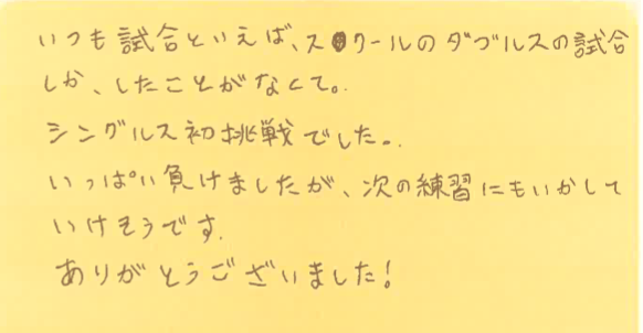 「初挑戦のシングルス試合」とのこと、ご参加いただき嬉しいです!