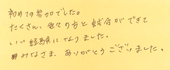 「たくさん色々な方と試合ができて、いい経験になった」とのこと、主催者としてとても嬉しいです!
