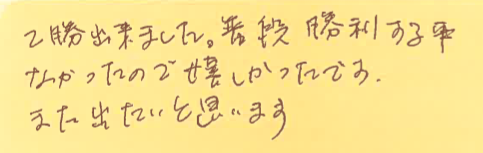 2勝おめでとうございます!!勝つとさらにやる気が出ますね!!