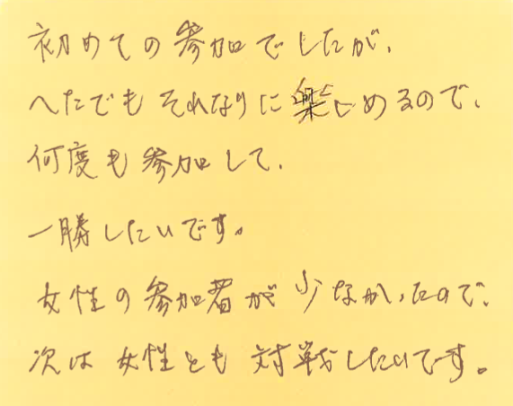 女性の参加者が少なかったのは、残念でしたが、多くご参加いただく日もあるはずですので、粘り強くご参加ください!!