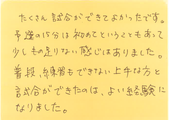 15分の試合は、短く感じるかもしれませんが、その分たくさんの試合ができるので、効率的にたくさん経験が積めるんですよね!