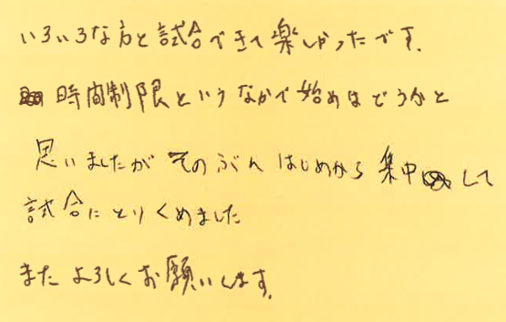 色々な方と対戦できて楽しかったとのこと、嬉しいです!