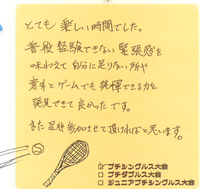 それと、時間制限があるので、おっしゃる通り、最初から集中する必要がありますが、これは普通の試合に行った時に、ものすごいアドバンテージになりますので、今回の経験を活かして、これからのテニスをより一層お楽しみください!