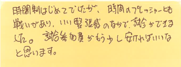 時間制の試合を楽しんで頂けて、うれしいです!!