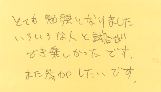 色々な人との試合を楽しんで頂けて、うれしいです!