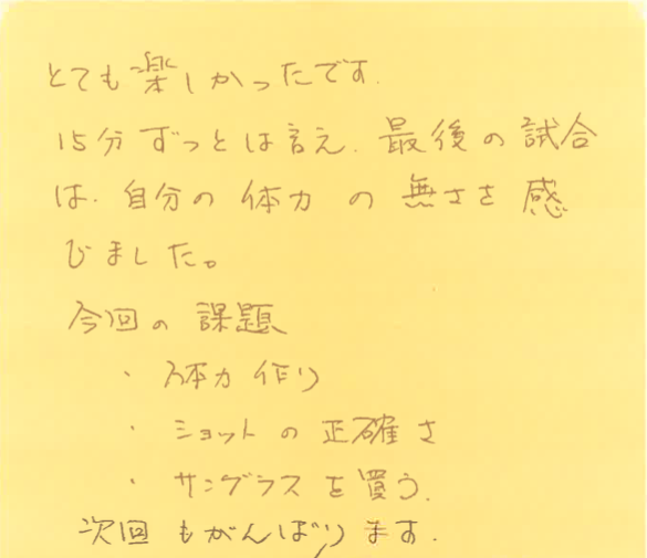 また、皆さんとコートでお会いできる日を楽しみにしております!!