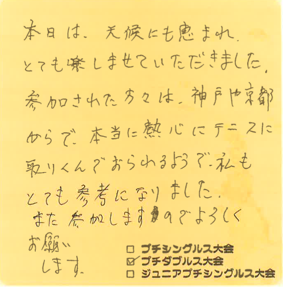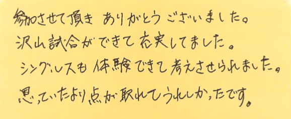 今回は、ダブルスでのエントリーでしたが、シングルスのお手伝いもしてくださり、ありがとうございました!