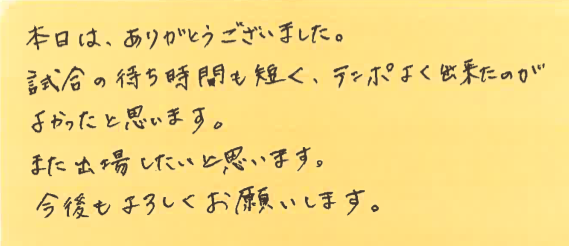 たくさん試合ができ、充実していたとのこと。大変うれしいです!
