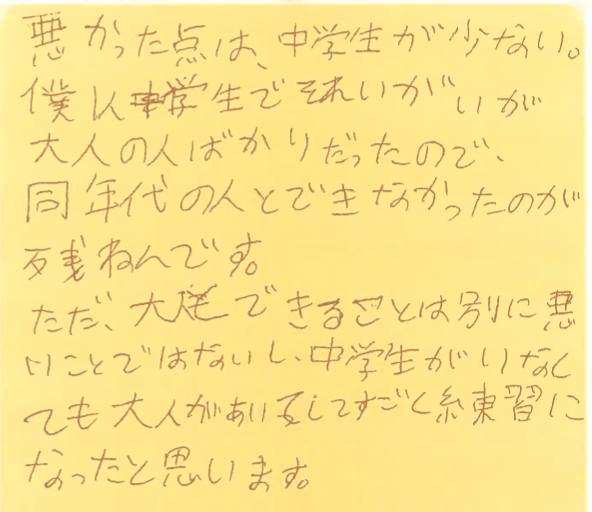 と言いつつ、まずは、中学生が少なくて失礼いたしました。
