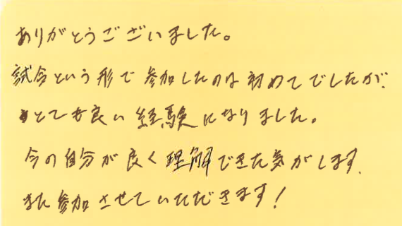 初めての試合形式のご参加で、良い経験になったとのことで、うれしいです!