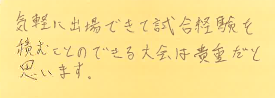 そして、おっしゃる通り、「気軽に出場できる」点、気に入ってくださり、嬉しいです!