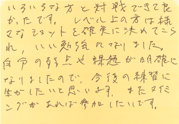 色々な方との対戦で、いい勉強になったとのことで良かったです!