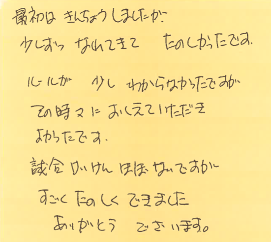 試合経験があまりないと、余計に緊張すると思いますが、楽しんで頂けて良かったです!