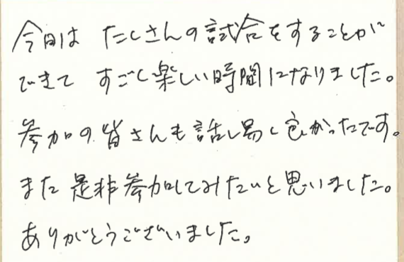 今回は、11月7日の調布大会に初めて参加された方の感想と私からのお返事をシェアさせていただきます!