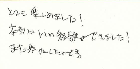 楽しんでいただき、いい経験になったとのことで、良かったです!