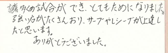 多くの試合を経験し、サーブやレシーブが上達したとのこと、素晴らしいです!!