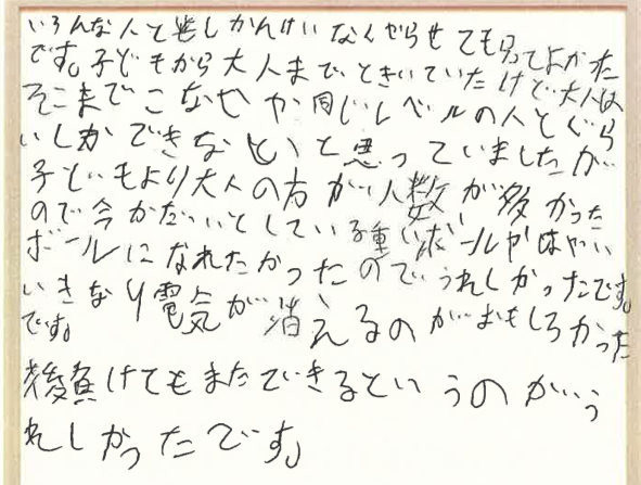 やはり、こういう場で、初対面の方のサーブを受けたりすることで、自分の対応力が養われるんですよね!