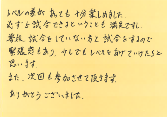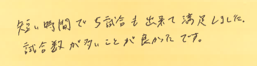 短い時間で5試合を楽しんで頂けて、満足してくださったとのこと。・・・うれしいです!