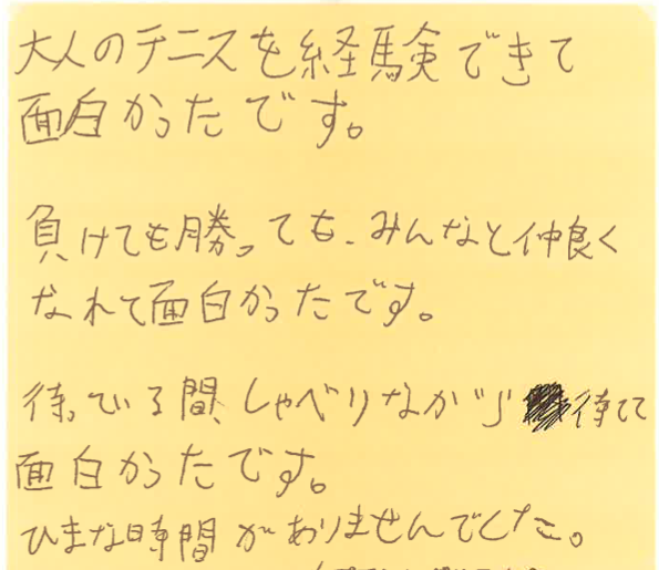 大人のテニスを楽しんでもらえて、良かったです!