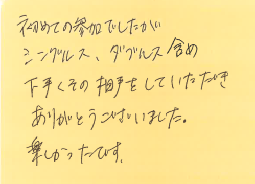 シングルス・ダブルスの試合を楽しんで頂けて、うれしいです!
