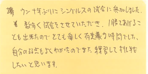 久しぶりのシングルスの試合で1勝おめでとうございます!