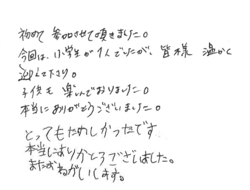 大人の中に小学生一人での参加でしたが、楽しく過ごしていただき、安心しました!